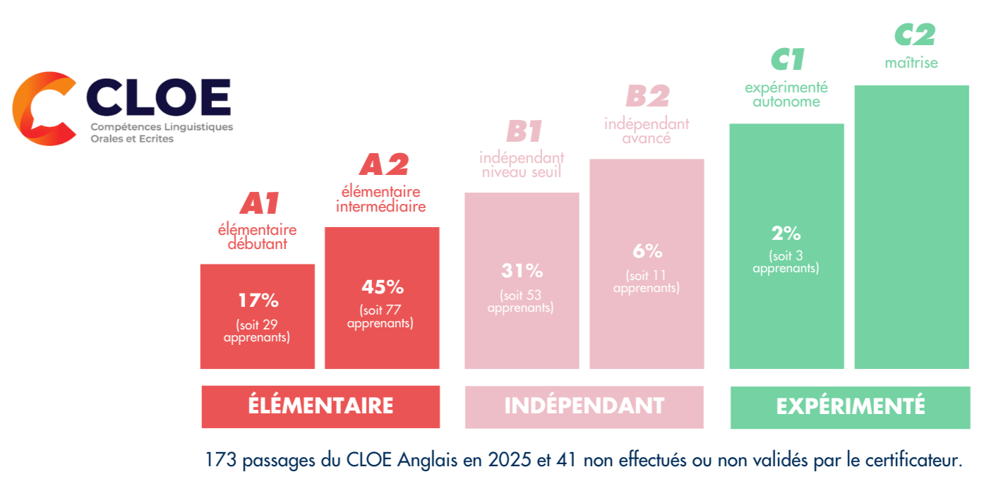 328 apprenants formés en 2025 via un budget de formation professionnelle continue, dont 319 en anglais et 9 sur d’autres langues,la répartition des résultats s’est faite comme suit :